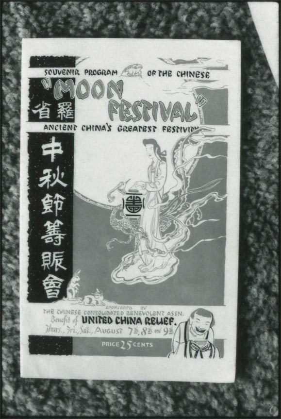 - Front cover from souvenir program of Moon Festival fundraiser by Chinese Consolidated Benevolent Association for United China Relief, August 7-9, 1941.