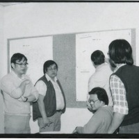 - Five people pictured, four at board as they discuss planning for CHSSC.