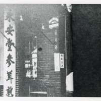 - Close up of a storefront on Marchessault Street. There are signs in Chinese around the entrance.