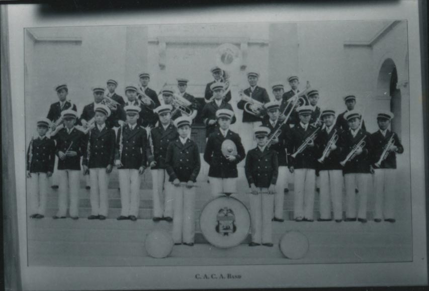- CACA Los Angeles Lodge Band pose on a staircase with their instruments. Featured in the 1931 CACA Convention Souvenir yearbook, each member I.D. in book.