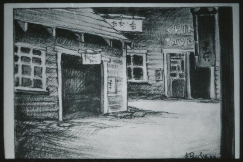 - Illustration of Louie's Tea and Novelty Store from "China City" by Raymond Connor, illustrated by F. Paul (Lyles?), copyright 1938 George S. Stein, published by China City Publishing Co. Los Angeles, Calif.