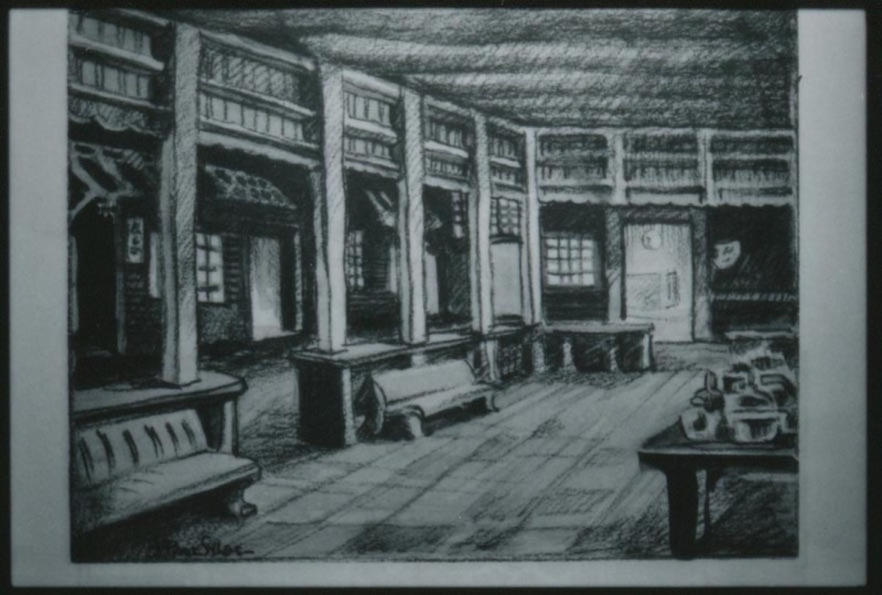 - Illustration of storefronts in China City. From left to right: Rainbow Tea Room and Art Shop, Cha Tai Pow, Chinese Slipper Shop, Cathay Art Studio, Imperial Musicians, Little Peanuts. from "China City" by Raymond Connor, illustrated by F. Paul (Lyles?), copyright 1938 George S. Stein, published by China City Publishing Co. Los Angeles, Calif.