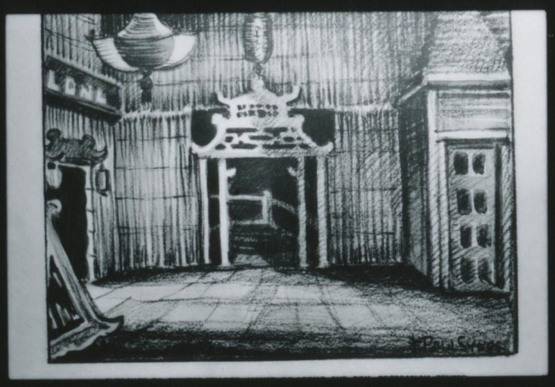 - Illustration of storefronts in China City. From left to right: Entrance of Chinese Village, House of Len & Son, Recreation Center, Chan Loo, the Magician. From "China City" by Raymond Connor, illustrated by F. Paul (Lyles?), copyright 1938 George S. Stein, published by China City Publishing Co. Los Angeles, Calif.