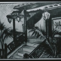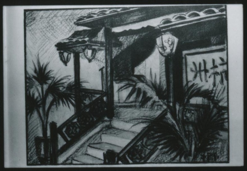 - Illustration of the entrance to Hangchow Cafe from "China City" by Raymond Connor, illustrated by F. Paul (Lyles?), copyright 1938 George S. Stein, published by China City Publishing Co. Los Angeles, Calif.