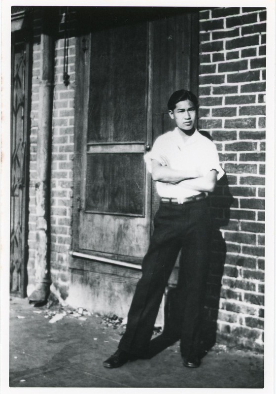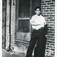 - Swan Yee standing behind Tom Gubbins' shop located on North Los Angeles Street in the mid 1930s.