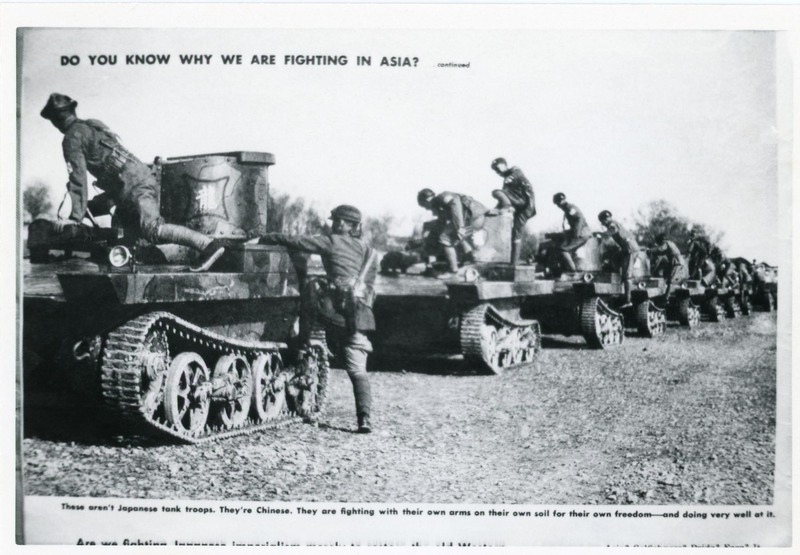 "These aren't Japanese tank troops. They're Chinese. They are fighting with their own arms in their own soil for their own freedom--and doing very well at it"- p.12. Paul Guillumette China Film.